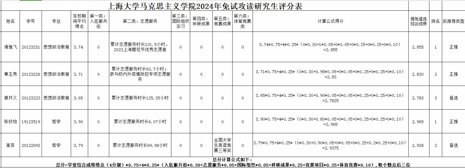 根据教育部关于做好2024年推荐优秀应届本科毕业生免试攻读研究生工作的相关文件的要求及《ty8线路测速入口2024年推荐优秀应届本科毕业生免试攻读研究生工作实施办法》、《ty8线路测速入口天游ty8线路检测中心登录2024年推荐优秀应届本科毕业生免试攻读研究生工作实施方案》等文件相关精神,学院推免工作小组以学业综合成绩即学生本科阶段截至2022-2023学年夏季学期结束,学生所修读的所有本科课程的平均成绩绩点(以学生成绩大表为准),综合考虑入伍服兵役、志愿服务、国际组织实习、科研成果、竞赛成果、体育竞赛成果等六类全面发展指标的表现,进行遴选综合成绩排序,产生天游ty8线路检测中心登录2024年拟推荐应届优秀本科毕业生免试攻读研究生名单,公示如下: