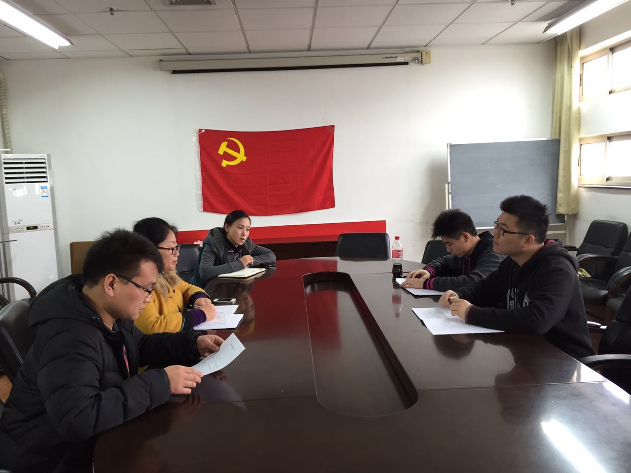 会议伊始,聂海岭介绍了会议议程并宣布会议开始。两位发展对象汤博麟、杜光宇分别进行了入党志愿书的宣读,他们真情地表达了对党员身份的理解以及自己迫切要求入党的愿望。接着,刘锦介绍了两位发展对象的培养情况,聂海岭介绍了发展对象的考察培训和政审情况以及党内外群众意见和公示情况。与会党员对两位发展对象充分发表意见并进行了民主评议。经举手表决,全体党员一致同意接收两位发展对象为预备党员。最后,卢吉超向两位同学表示了祝贺,并对他们提出期望,希望他们能都发挥自己的模范带头作用,以党员的先进性积极影响和带动周围同学,严于律己,甘于奉献。