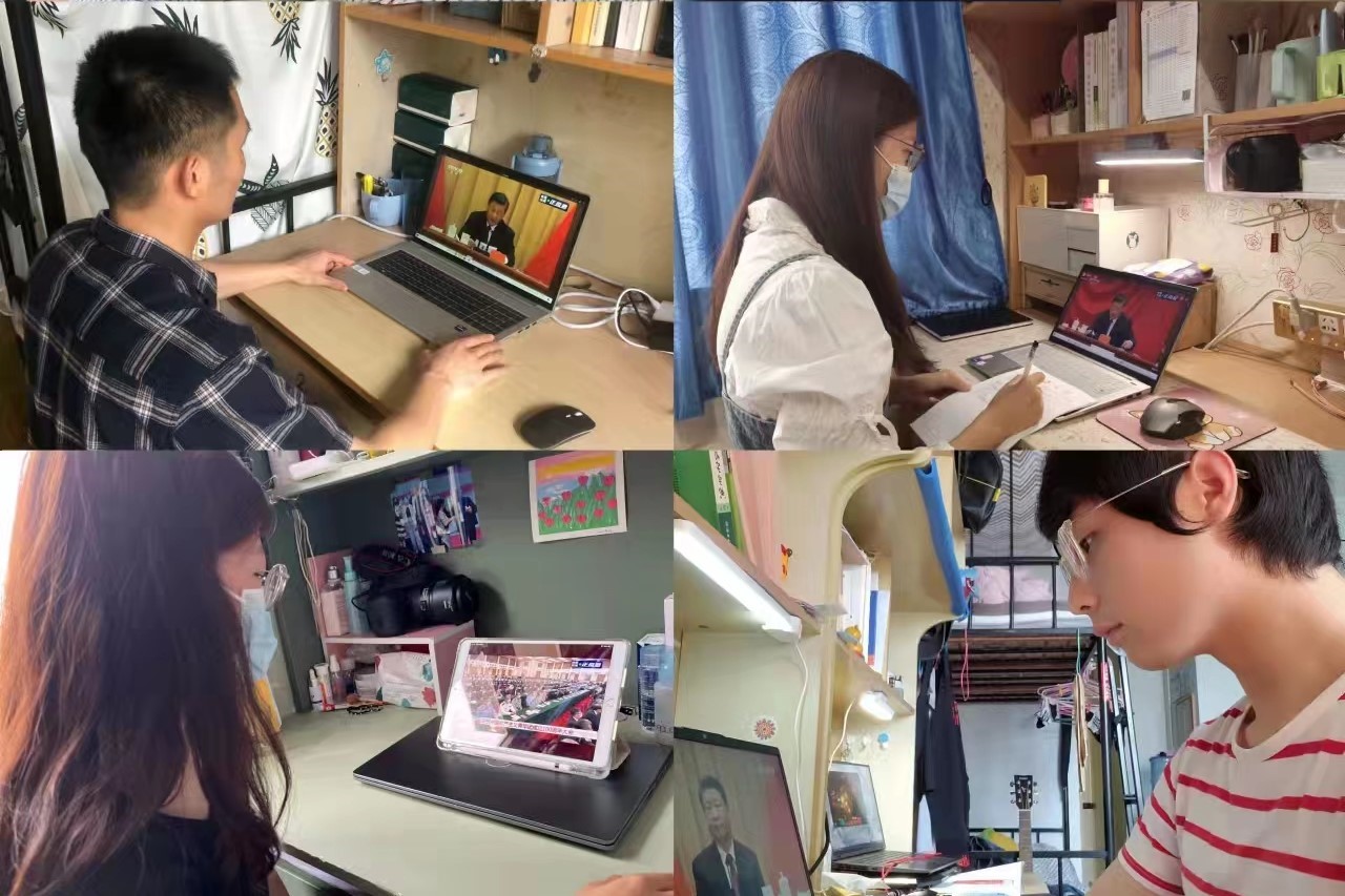 庆祝中国共产主义青年团成立100周年大会于5月10日上午在北京人民大会堂隆重举行。中共中央总书记、国家主席、中央军委主席习近平出席大会并发表重要讲话。天游ty8线路检测中心登录第一时间组织广大团员青年收看大会实况直播并且认真学习习近平总书记重要讲话精神,作为下一阶段“喜迎二十大、永远跟党走、奋进新征程”主题教育实践活动的主要内容,贯彻落实到各项工作中。马院团员青年备受鼓舞,纷纷表示要肩负起时代赋予的重任,喊出“请党放心,强国有我”的誓言,在实现中华民族伟大复兴的中国梦的新征程上坚定不移地听党话,跟党走,以实际行动迎接党的二十大的胜利召开。