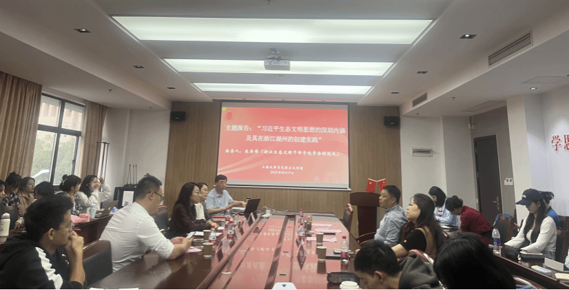 随后,朱荣伟院长围绕“习近平生态文明思想的深刻内涵及其在浙江湖州的创新实践”做专题报告,生动阐释了习近平生态文明思想的意义内涵,介绍了湖州以“两山”理念为指引的生态文明建设实践及经验启示,探讨了习近平生态文明思想在湖州的实践探索。 双方都表示,希望以此次交流为契机,进一步加强在教育、培训、科研、实践等方面的合作,协力推进两院事业的高质量发展。(撰稿人:刘锦) |