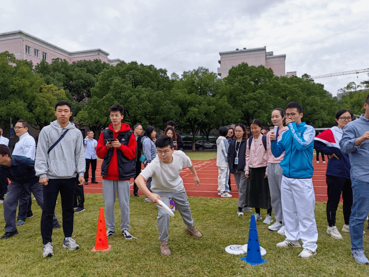 今年,天游ty8线路检测中心登录广播体操教职工队伍由18位老师组成,同时,学院的本科生也作为秋白书院的代表参加到广播体操比赛中。广播操是一项需要动作协调、节奏感强的活动,对参与者来说,不仅需要整齐划一地完成动作,还需要展现出饱满的面貌。当天,天游ty8线路检测中心登录教职工队伍以身作则,在广播操比赛的赛场中舞出风采、舞出活力。此外,还有10位教师代表参加了趣味运动会中的“飞盘九宫格”“锁定新目标”项目,一位青年教师还参加了“平板支撑”的个人赛。学生运动员们过关斩将,相继参与了混60米迎面接力、混拔河、混旋风跑、混单脚跳接力、混袋鼠跳迎面接力等项目,在运动会上展现了团结合作与拼搏进取的精神风貌。