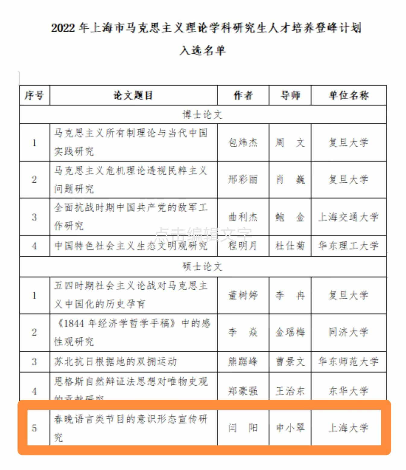 12月15日,我校马院硕士生论文入选上海市马克思主义理论学科研究生人才培养登峰计划。 今年学院获批2023年国家社科基金项目、教育部人文社会科学研究项目及专项项目、教育部社科司中华优秀传统文化专项课题(A类)重点项目、上海市哲学社会科学项目和国家广电总局等省部级以上科研项目立项16项。韩玲教授科研成果《红色文化融入高校思想政治教育的实践向度研究》成功入选全国高校思想政治工作研究文库;孙伟平教授在《哲学研究》发表《价值哲学视域中的算法歧视与社会公正》一文;青年教师庞聪在Nature子刊Humanities & Social Sciences Communications发表论文《Is a partially informed choice less autonomous?: a probabilistic account for autonomous choice and information》;肖峰教授在《马克思主义研究》发表《数字劳动的边界论析——基于马克思劳动观的考察》;孙伟平教授学术论文《智能时代的新型人际关系及其构建》被《新华文摘》全文转载。 2024的曙光即将闪耀,笃志前行、虽远必达,坚定信心、奋力拼搏,让我们一起为天游ty8线路检测中心登录更美好的明天贡献青春力量! |