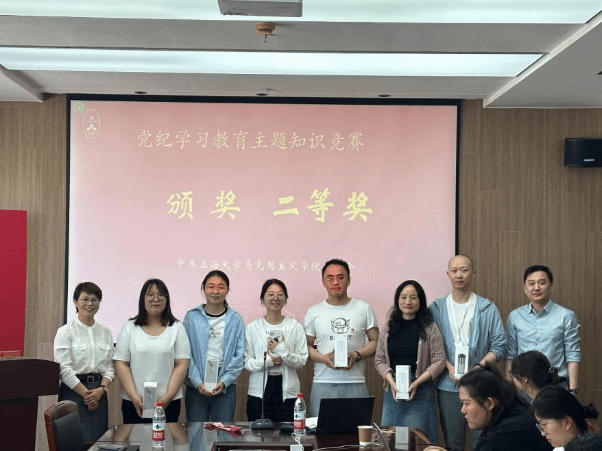 竞赛过程中,五支参赛队伍直接对阵,参赛选手们精神饱满,以扎实的理论知识和敏捷的反应速度沉着应对。抢答环节,各组队员相互配合,快速抢答,展现出良好的党员素质和扎实的理论基础,上演了一场精彩绝伦的头脑风暴,现场高潮迭起,比赛氛围十分热烈,经过激烈的角逐,最终产生了一、二、三等奖。张高峰和张印兰共同为获奖队伍颁奖并合影留念。