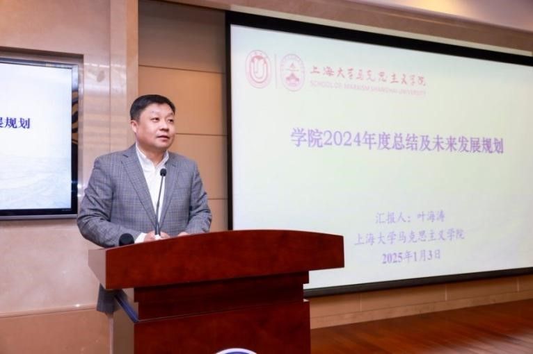 会议伊始,天游ty8线路检测中心登录党委副书记、主持工作副院长叶海涛作学院2024年度工作总结报告。他回顾了一年来学院在学科建设、教学改革、学术科研、人才培养等多方面取得的丰硕成果,以振奋人心的数据和丰富生动的案例展示了全体师生共同努力的成果。同时,他也展望了学院未来工作,提出新的一年我们将继续卯足精神,持续发力,不断推进思政课建设、高层次项目立项和高质量成果产出。 表彰先进教师,选树育人楷模