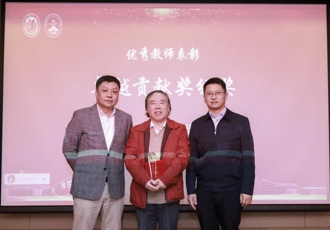 在优秀教师表彰中,学院党委书记王国建和主持工作副院长叶海涛共同为“卓越贡献奖”获得者王天恩教授颁奖,对其学术上的创新与影响力表示深刻致敬,对其在学院事业发展上的率先垂范、提携助力表示诚挚感谢。 随后,学院领导班子成员为“英才培养奖”、“教学贡献奖”、“科研贡献奖”、“青年才俊奖”、“服务奉献奖”、“工会工作积极分子”等各项荣誉获奖教师颁奖。表彰了教师们在人才培养、教学、科研、社会服务等各方面做出的优异成绩,也感谢了他们在学院高质量发展中的辛勤付出。 荣休温馨时刻,礼赞感恩韶华